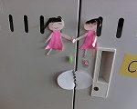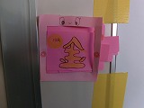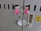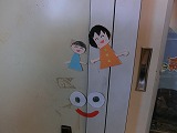 作品は、教室の入り口や水槽、掃除用具の取っ手、水道、廊下や廊下の掃除用具等に貼ってあります。見ていると、ホッとできる作品だったり、くすっと笑える作品だったりします。子供たちの発想の良さやユーモアを感じます。自分たちの日常生活を自分たちの手で豊かにすることができました。