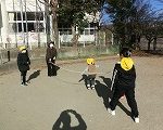 中休みに、1,2年生が声をかけ合いながら、短縄を楽しんでいました。