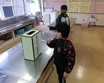 初めて投票を経験した2年生も投票場所である家庭科室にくると、少し緊張気味でした。手順を聞きながら一生懸命考えて投票していました。