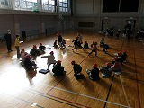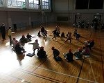 楽しんでいる中でも、同じ座布団に座ろうとすると、年上の子供たちが手を差し伸べてゆずっている光景を何度も見かけました。全員で取り組んだ時も同様です。円は私が見た中で、今まで一番大きな円で楽しんだフルーツバスケットでしたが、たくさん笑顔を見ることができました。