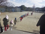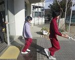 気温が下がり冬に近づくと、休み時間に見られる光景に短縄運動があります。