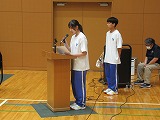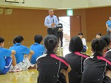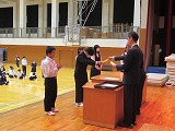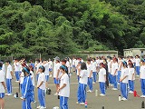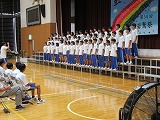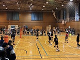 本校バレーボール部が、5月24日(土)に選手権大会の北都留地区代表として県大会に参加しました。1回戦は、甲府支部2位の富竹中学校と対戦しました。1年生も参加し、大きな声を出して応援していました。立ち上がり、上中はしっかり拾い、つなげて得点につなげたり、サーブもしっかり決めたりといい戦いをしていました。しかし相手も長身のアタッカーがいたりと強いスパイクを決めたきました。2セット目は本当によく粘り、素晴らしい戦いをしました。