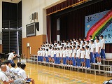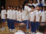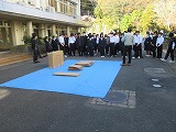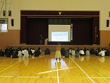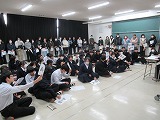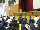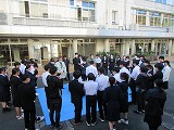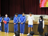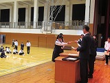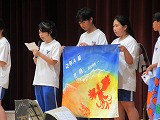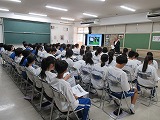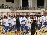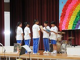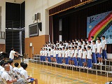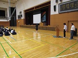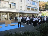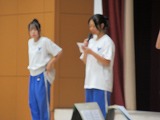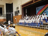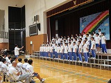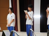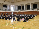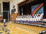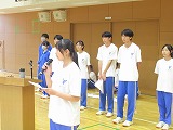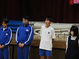 本日、3年生は、先週の2泊3日の修学旅行を終えての「解団式」を行いました。修学旅行実行委員会の最後の仕事です。土日の2日間では、旅行の疲れな抜けきらず眠そうな顔の生徒もいたり、いっぱい充電し元気を取り戻した生徒もいたりとまちまちでしたが、しっかり整列し集中して会に臨んでいました。この3日間で学び成長したことを、今後の中学校生活にいかしていってもらいたいと思います。3年生は、この修学旅行の3日間で大きく成長しました。生徒たちに考えさせる場面が多かったです。この都度、生徒たちは真剣に考えてくれました。学び多い3日間でした。保護者の皆様、ご協力本当にありがとうございました。