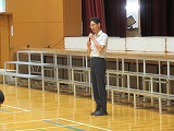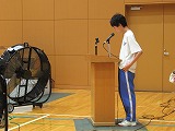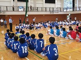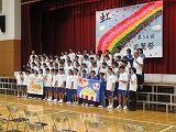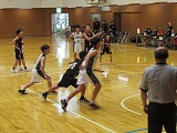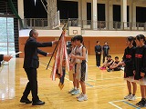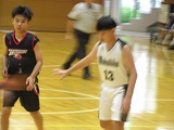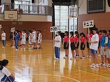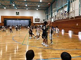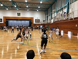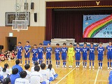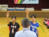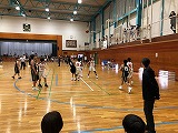 本校バスケットボール部が、5月25日(日)に選手権大会の北都留地区代表として県大会に参加しました。1回戦は、吉田支部1位の吉田中学校と対戦しました。吉田中学校は、1年生大会の県チャンピオンです。今回は1年生も参加し、大きな声を出して応援していました。立ち上がり、上中は、緊張していたものの相手より走り、しっかり守り、互角の戦いをしていました。3ポイントシュートも決まって相手にプレッシャーをかけた場面も多くありました。しかし相手もチャンピオンです。リズムに乗った速攻や流れるような展開の攻撃が成功したりと、ジリジリ引き離されていきました。しかし、上中生は、最後まで諦めることなく、仲間と協力し、チーム力で「みんなで守り、みんなで攻める」を徹底していました。次の大会に繋がるいい経験となりました。