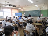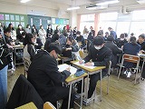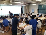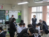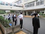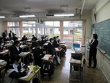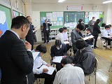 本日、富士・東部教育事務所の方々が上野原中学校に訪問しました。教育事務所からは、3名の先生方がお越しになり、午前中に各学級の授業の様子を参観し、生徒の頑張りや先生方の勤務状況について情報を収集してくださいました。生徒たちが、授業に集中し一生懸命発言する姿や、来週に行われる中間テストの対策の学習課題を真剣に解く姿を見て大変褒めてくださいました。毎年、この時期の訪問があるのですが、年々頑張っている姿が多く見られるようになってきていると言ってくださいました。先生方に対しても、生徒に寄り添った授業を進めていおるとお褒めの言葉もいただきました。