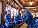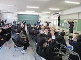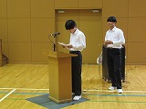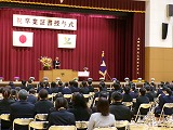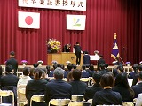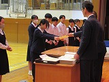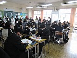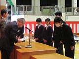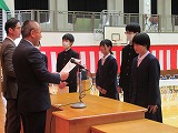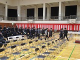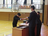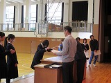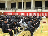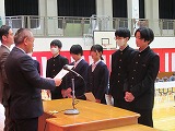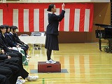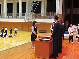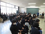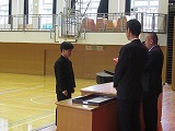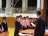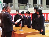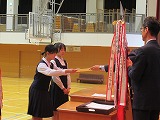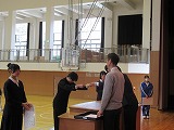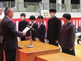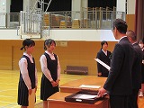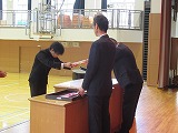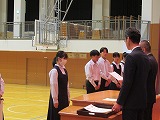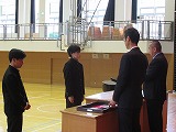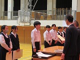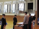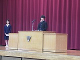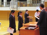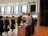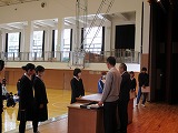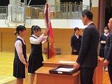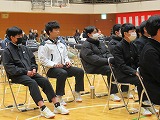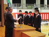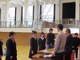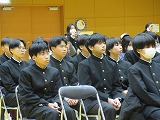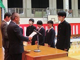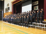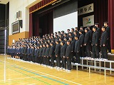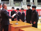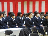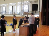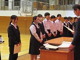 4月8日(火)、入学式を行いました。当日は、桜の花も満開で、柔らかな日差しに包まれた穏やかな日でした。新入生の皆さんは、緊張している様子でしたが、担任の呼名に大きな声ではっきりと返事をすることができました。また、新入生代表の誓いの言葉も、新たな環境で新鮮な気持ちでスタートする決意を感じることができました。7日には、新3年生が会場準備に登校し、きれいな式場をつくりました。本当にありがとうございました。