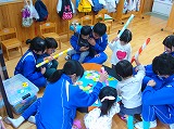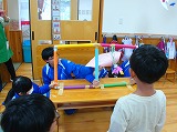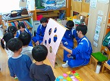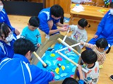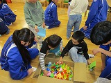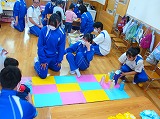 10月27日(月)と30日(木)に、3年生が学級ごとに保育実習を行いました。家庭科の授業の一環として行ったもので、幼児とのよりよい関わりについて学ぶために、実際に地域のこども園にご協力いただき、実習を行いました。生徒の皆さんは、手作りした遊び道具を使って、一緒に遊んだり喜んだりするなど、よい体験をすることができました。ご協力いただきました園児の皆さん、職員の皆さんに感謝申し上げます。