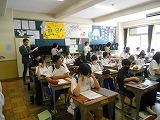 7月中旬、朝の10分間を使って、養護教諭と栄養教諭がそれぞれ学習会を行いました。養護教諭は、異性との関わり方や気をつけてほしいことなどについての学習を行いました。また、栄養教諭は、1日3食をしっかりと摂ることの大切さや飲料について気をつけてほしいことなどについての学習を行いました。いずれも夏休みを前にして、休み中の生活に関わる大切な話でした。