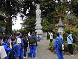 10月31日(金)、1年生が校外学習に行きました。学区内にある甲州街道を実際に歩き、現存する文化財や史跡・遺構などにふれることにより、ふるさと上野原の歴史や文化、伝統などを学ぶことを目的として行いました。生徒の皆さんは、事前に学習したことをみんなの前で発表し、他の生徒は話を真剣に聞き、メモを取るなどしていました。当日は、保護者や地域の方にもご協力いただき、文化財の説明をしていただいたり、安全面で配慮していただいたりしました。お忙しい中、ご協力いただいた皆さんに感謝申し上げます。