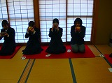 写真は妙心寺の本堂に向かって歩いている姿です。3年生が妙心寺にいるということは,2日目のグループ別見学を無事終えたと言うことです。タクシーの運転手のみなさま,お世話になりありがとうございました。さて,この後,妙心寺での座禅体験です。