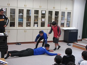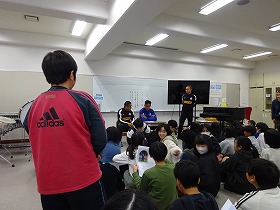 5月16日(金)に,上野原警察署交通課の警察官の方と,コモアしおつ駐在所の警察官の方にお越しいただき,交通安全教室を実施しました。本来であれば,実物の自転車を用いた指導も考えていましたが,今回は都合により自転車の準備が難しかったため,シミュレーターを活用した講習となりました。教室では,来年4月から適用される自転車交通違反の改正についても丁寧にお話しいただき,自転車を利用する際に被害者にも加害者にもならないための交通ルールや注意点について,改めて学ぶ貴重な機会となりました。