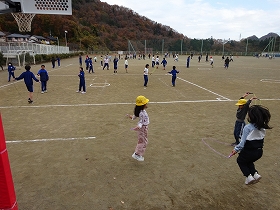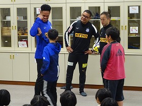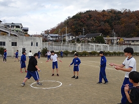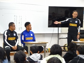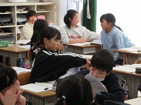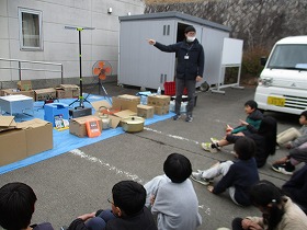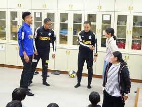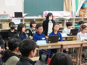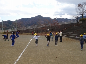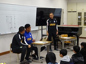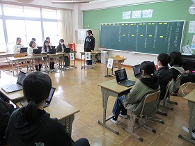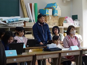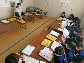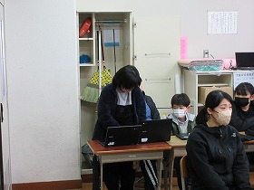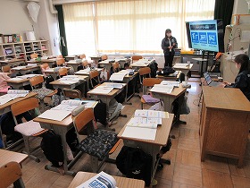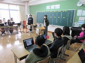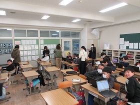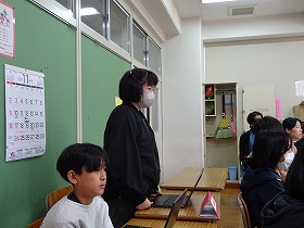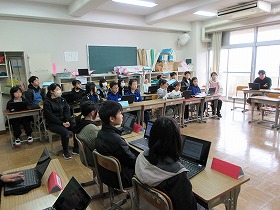 無事学校に到着しました。校舎にいる先生に「ただいま」のあいさつをして,コモア探検は無事終了しました。