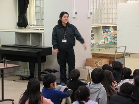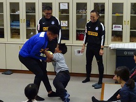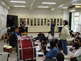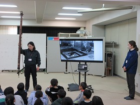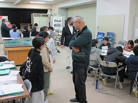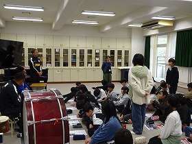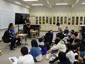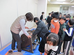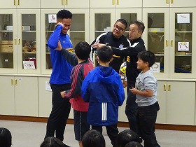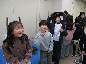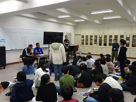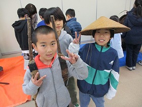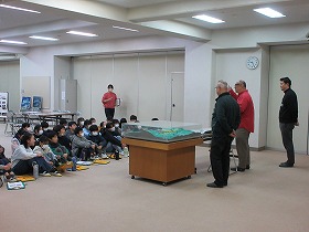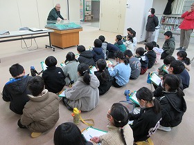 市役所の展望室からは上野原市役所の周りがよく見えます。また,市役所内に開設されたアーカイブルームの見学も行いました。縄文時代から現代までの歴史や文化財,伝統芸能が展示されています。子ども達も見た事のないものがあり,興味津々でした。たまじ丸くんとの交流もありました。