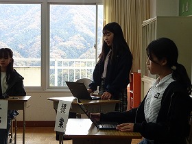 次の学習目的地は,市役所です。市役所の2階にある庁議室と議会の会議室を見学しました。ここで,上野原市の様々な事が決まっていく事を学習しました。