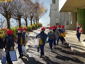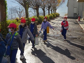 1 あいにくの雨でしたが子ども達は笑顔で学校を出発していきました