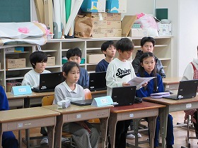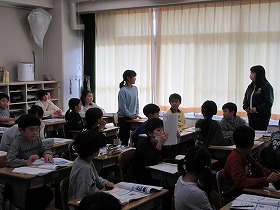 5月21日(水)に先生方に聞いたことについての発表がありました。この日の前に,4年生の児童が先生方のところにインタビューに行っていました。小学生の頃,夢中になった事について調べ,それをまとめるというものでした。内容については,よくまとまっていて,伝える態度も大きな声ではっきりと伝える事ができていました。
