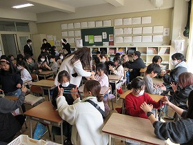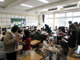 最後は,棡原の「ふるさと長寿館」に行きました。ここで昼食をとり,地域の特産物についても学習しました。長寿館の方からは,お土産もいただきました。