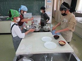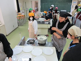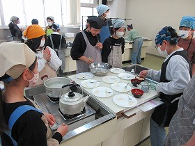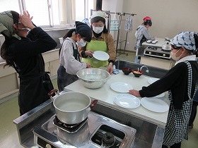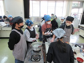 5月13日(火)に調理実習を行いました。慣れない手つきながらも,おいしそうなスクランブルエッグと野菜炒めができあがりました。どの班もおいしそうに食べていました。